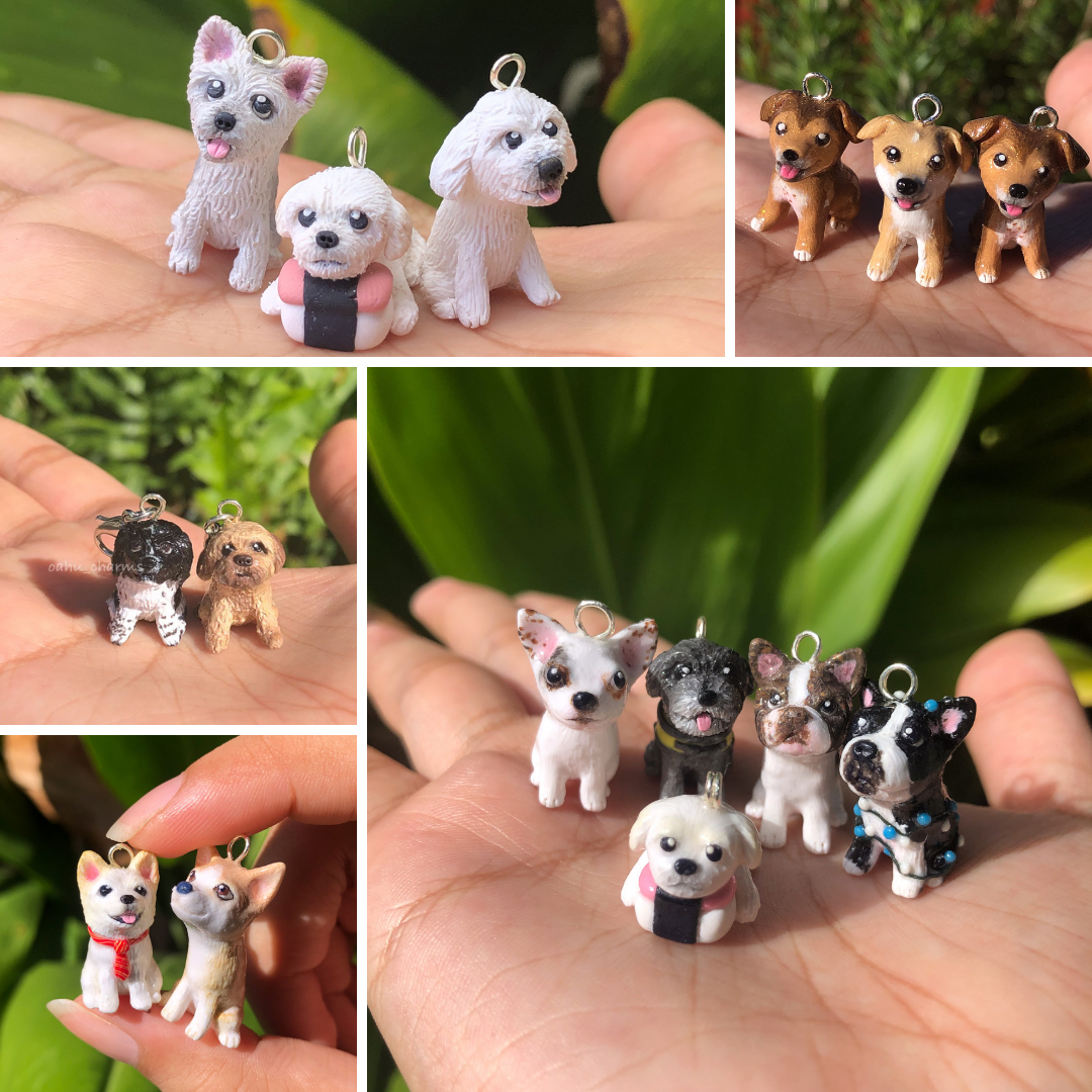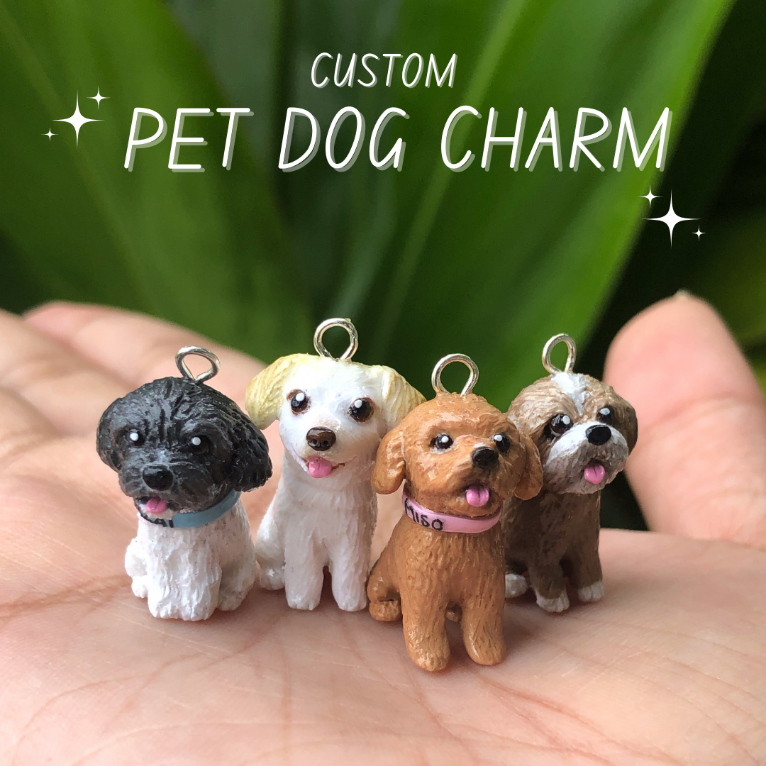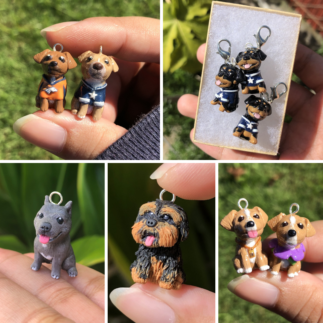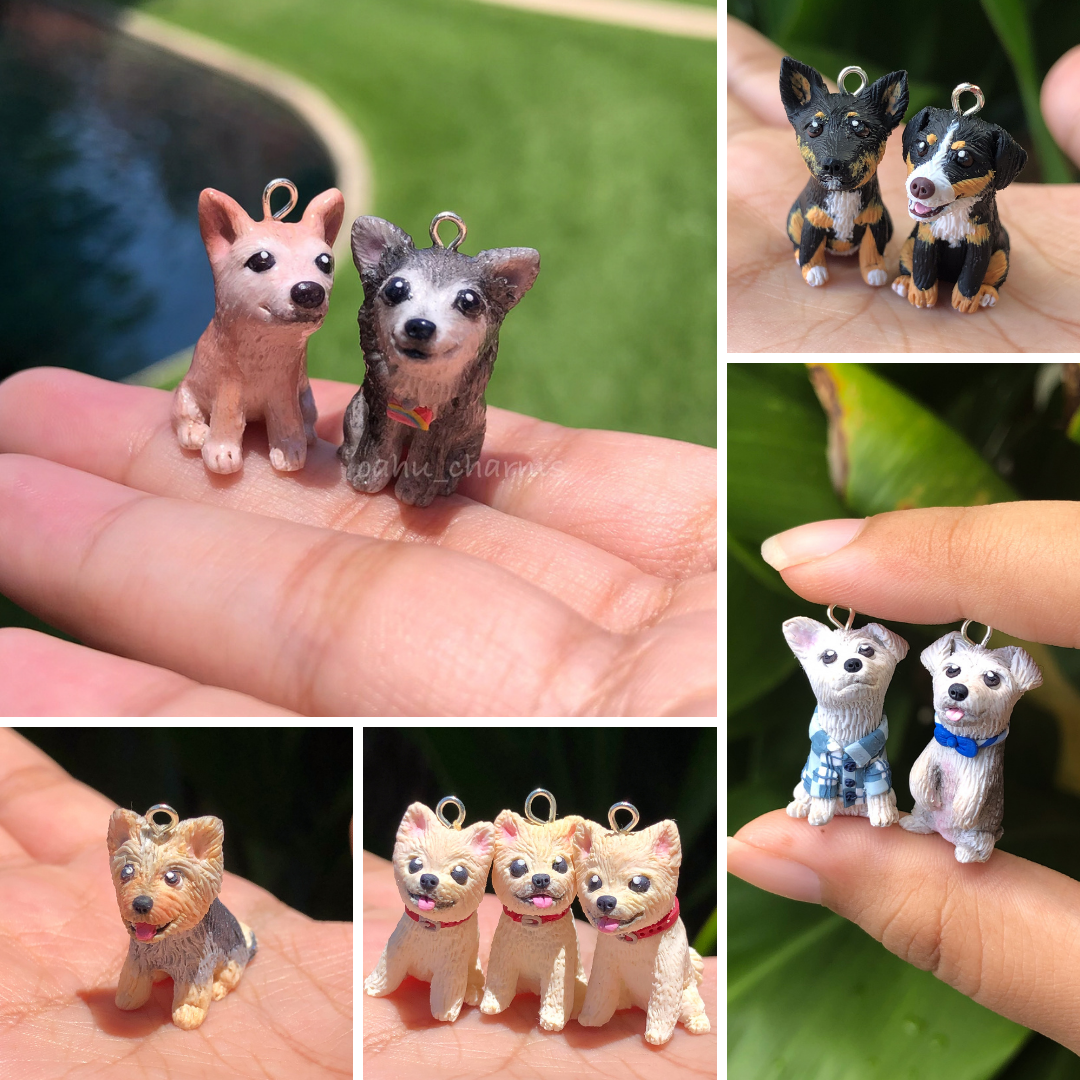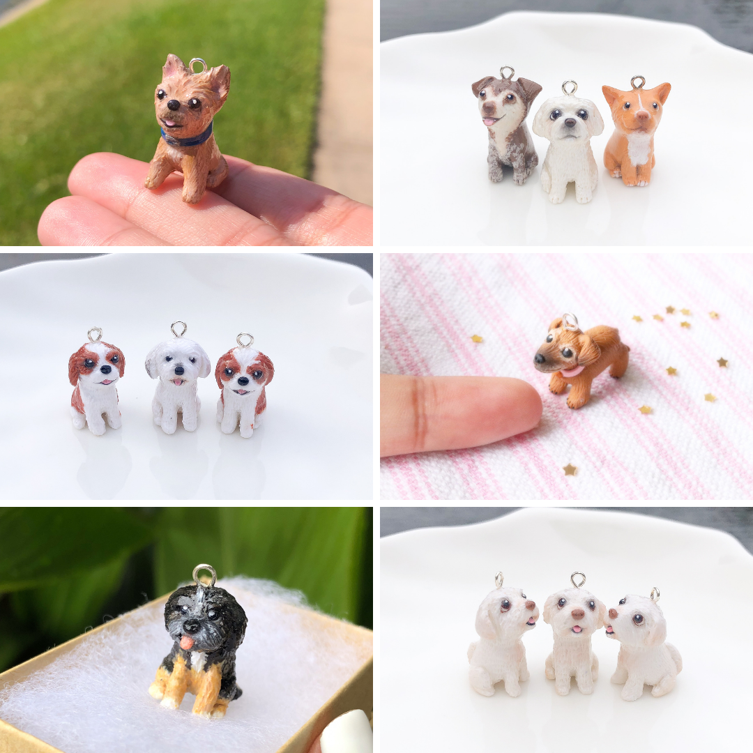A custom made full body clay charm of your pet doggy; this is the perfect little gift for yourself or a fellow pet-lover in your life!